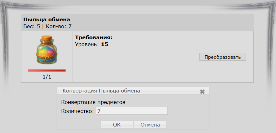 Любую продукцию, изготовленную Жрецом, нельзя использовать, пока она не стала личной. Для того, чтобы сделать вещь личной, необходимо преобразовать ее в Лаборатории Жрецов, во вкладке «Преобразователь».