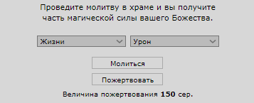 В Зале молитв при нажатии кнопки "Пожертвовать" персонаж моментально получает выбранную ауру, серебро при этом идет на алтарь соответствующего храма.