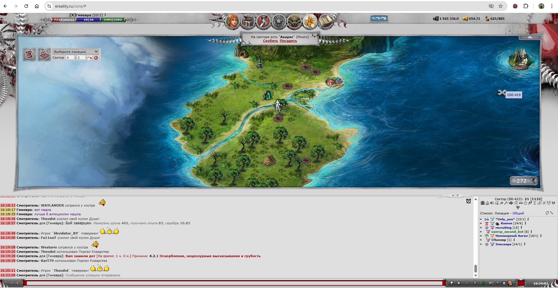 | 3763 | Посажен в тюрьму: Дело М № 6540 Ст 4.8.1. Штраф 60000 сер или 15 суток ОЗ Мультов сдать в ПСЖ - http://usercp.ereality.ru/voluntarily-block/rules Сервис жалоб: http://order.ereality.ru/ork/femida_ Вопросы по наказанию http://forum.ereality.ru/topic165249/page1.html [15 Д. 60000 сер.], Дата: 19:09:00 23-01-2025 Наказали за мульта, хотя я сам написал, что персонажем 20 уровня давно не пользуюсь и хочу начать заново. Не пойму вас, игроки новые не нужны? |